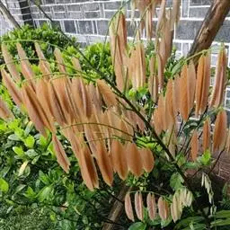 荚果腹背缝线缢缩呈念珠状,长3-4.5厘米,宽3毫米,有荚节6-10,荚节近方形,密被开展褐色小钩状毛。花期7-9月,果期9-11月。