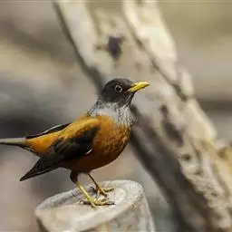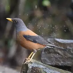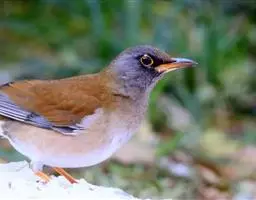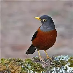 灰头鸫:中型鸟类,体长23-27厘米。整个头、颈和上胸褐灰色,两翅和尾黑色,上、下体羽栗棕色。…
