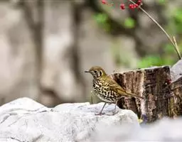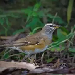 白眉歌鸫,是雀形目鸫科鸫属鸟类。体型略小并具有褐色斑点的歌鸫,上体橄榄褐色,眉纹白色,脸部斑驳,…
