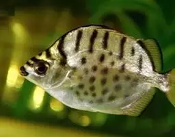 眼点丽鱼又称皇冠三间、孔雀鲈,为鲈形目,慈鲷科,丽鱼属一种淡水鱼类。…