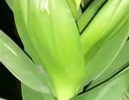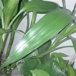 叶片宽大。叶簇生于茎顶,长椭圆状披针形,无柄;叶长40-90厘米、宽6-10厘米,弯曲成弓形,叶缘呈波状起伏,叶尖稍钝;鲜绿色,有光泽。穗状花序,花小,黄绿色,芳香。