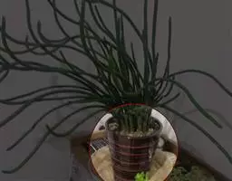 乔木状或灌木状植物,在原产地可高达6米以上,茎粗大,多分枝。树皮灰褐色或淡褐色,皮状剥落。盆栽高50-100厘米。树干直立,有时分枝。