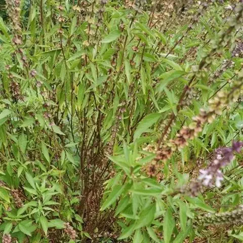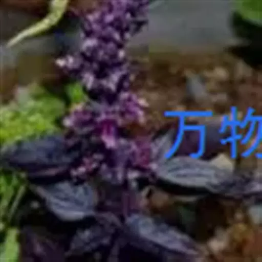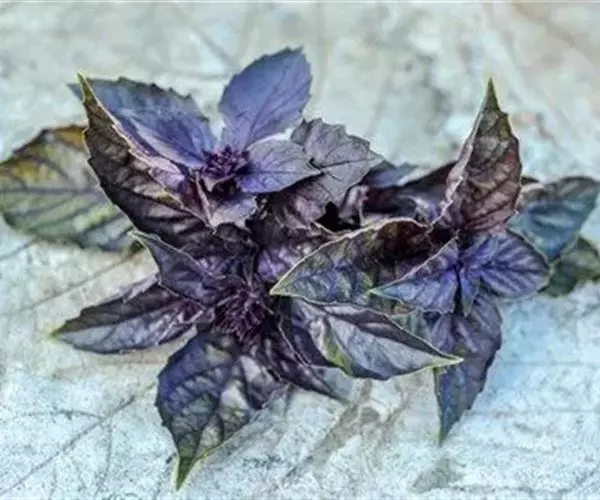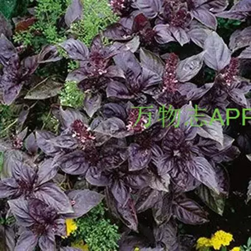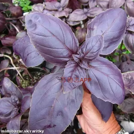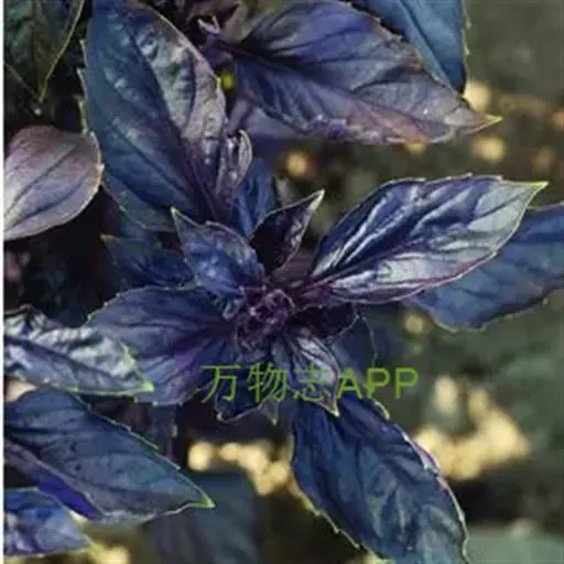 唇形科罗勒属,一年生草本,紫罗勒是罗勒的栽培变种,株高20~40cm,茎钝方形,全株暗紫红色。叶对生,卵形或长椭圆形,叶面微皱,叶缘有不规则锯齿状浅裂。花期在夏季,轮伞花序6,花排列成假总状花序,小花白色。