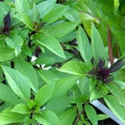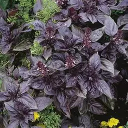 紫罗勒,Ocimum basilicum ‘Purple Ruffles’,英语名字 :Basil,唇形科罗勒属植物。叶色独特,适于庭植、花坛构成色彩变化或盆栽。叶片可当蔬菜食用,也可冲泡花草茶,浸入醋中可得色泽美丽的罗勒醋。