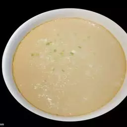 暖胃益气牛肉羹 材料:糯米180克,7杯(约1.4千克)水,50克牛肉,10g香菇,葱花、酱油、蒜泥、黑胡椒、芝麻油、盐。