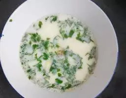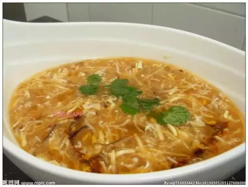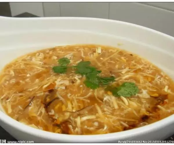 黑胡椒粉半匙,热高汤五杯,香菜少许;水一大匙,精盐两匙,味精半匙,湿淀粉一大匙。