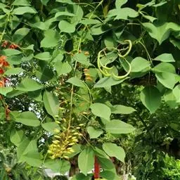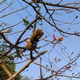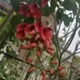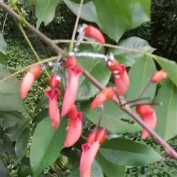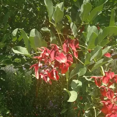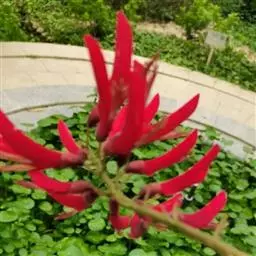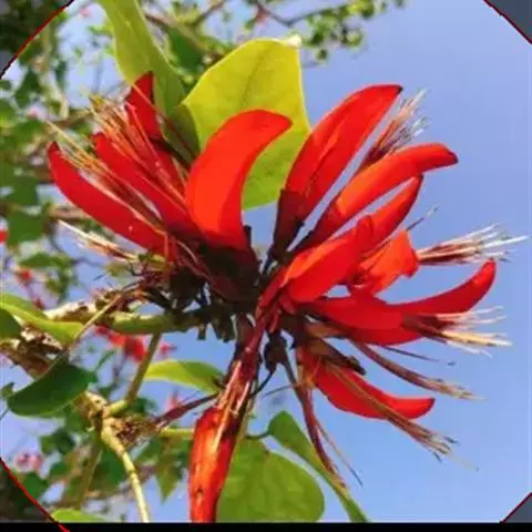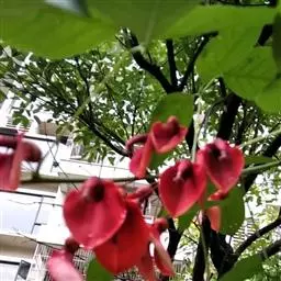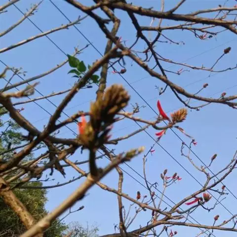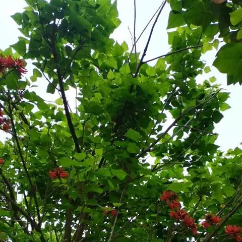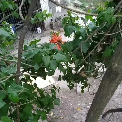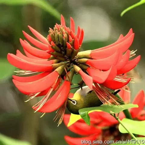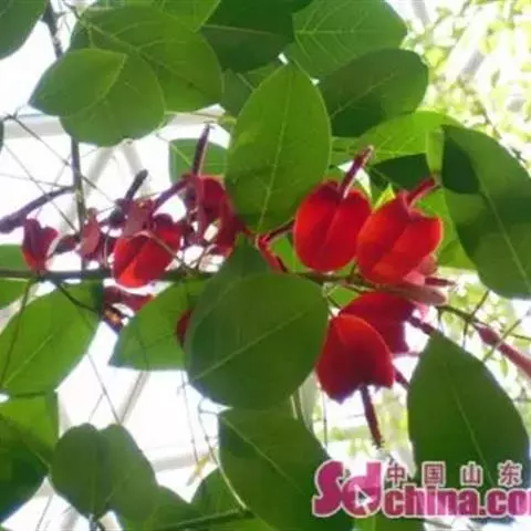 龙牙花(Erythrina corallodendron Linn.)与鹦哥花的主要区别是:顶生小叶菱形,长4-10厘米,旗瓣椭圆形,长4.5-6厘米,种子深红色,有黑斑。花期6-7月。