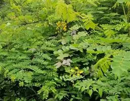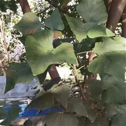 小乔木或乔木。树干和枝条具皮刺。羽状复叶具3小叶;托叶小;叶柄比小叶长,平滑,不具皮刺或有少数皮刺;顶生小叶近肾形,侧生小叶斜宽心形,长宽8-20(-25)厘米,先端急尖,基部截形或近心形,全缘,上面绿色,平滑,下面略带白色,两面无毛。