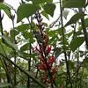 总状花序生于先端叶腋,单生,直立,比叶长;花鲜红色,大,具花梗,下垂;苞片单生,卵形,内有3朵花,在每一花梗基部有一小苞片;花萼陀螺形,肢截平或具不等的2裂;花冠红色,旗瓣近卵形,舟状,长约3.2厘米,翼瓣比龙骨瓣短,斜倒卵形,龙骨瓣长仅及雄蕊的一半;花丝比旗瓣稍短,在近基部联合成一体;子房具长柄,花柱与雄蕊同长。荚果弯曲,长12-19厘米,宽约3厘米或更宽,有明显的喙和果梗,有种子5-10颗;种子带白色或褐色,肾形,长约2厘米。