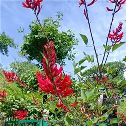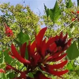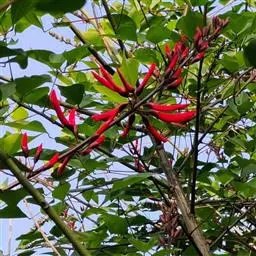 鹦哥花(学名: Erythrina arborescens Roxb.)是豆科刺桐属植物,小乔木或乔木。树干和枝条具皮刺。羽状复叶,叶柄平滑,顶生小叶近肾形,侧生小叶斜宽心形,两面无毛。总状花序生于先端叶腋,花鲜红色,大,具花梗,苞片单生,卵形,花萼陀螺形,花冠红色,旗瓣近卵形,舟状,斜倒卵形,花丝比旗瓣稍短,子房具长柄,荚果弯曲,种肾形子带白色或褐色,长约2厘米。
