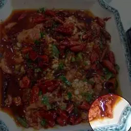 色泽美观,虾肉鲜嫩,味咸辣香,是一道深受人们喜爱的风味菜肴