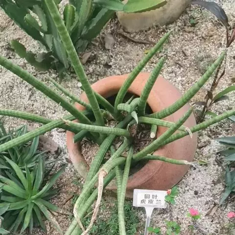 圆叶虎尾兰原产非洲西部,我国各地有栽培,供观赏。