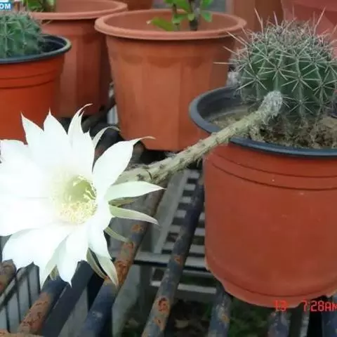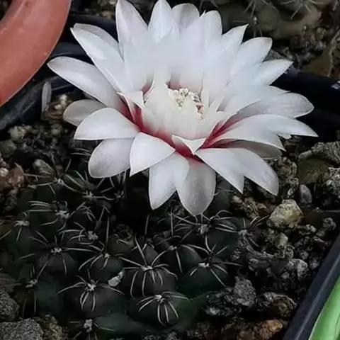 仙人球花 仙人掌科,仙人球属。植株单生或成丛。幼株球形,老株长成圆筒状,高可达75厘米,直径12-…