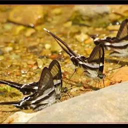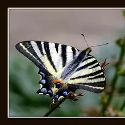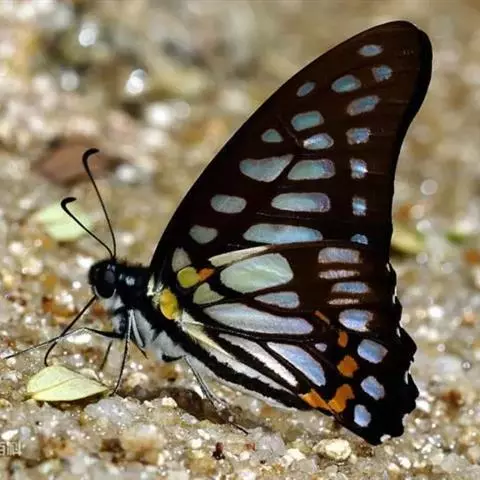 斑凤蝶,Chilasa clytia ,属于凤蝶科,外观拟态成青斑蝶,翅膀具条状与块状的灰白色斑纹…