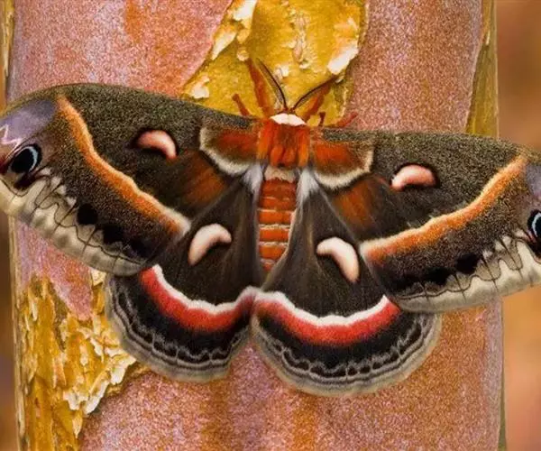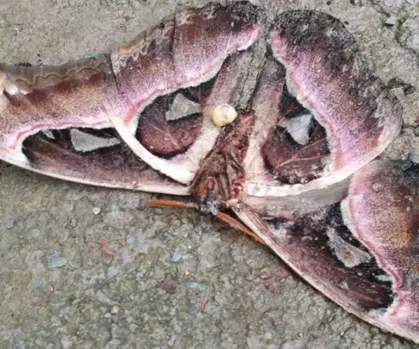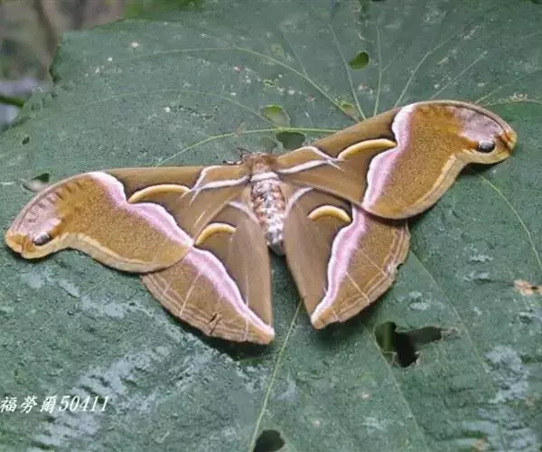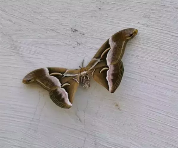 眉纹天蚕蛾,Samia cynthia (Drury, 1773),天蚕蛾科樗蚕蛾属的一种昆虫。展翅宽120~140mm。翅膀褐色;各翅中央具眉形淡色斑纹;上翅翅端也具有类似蛇头状斑纹。