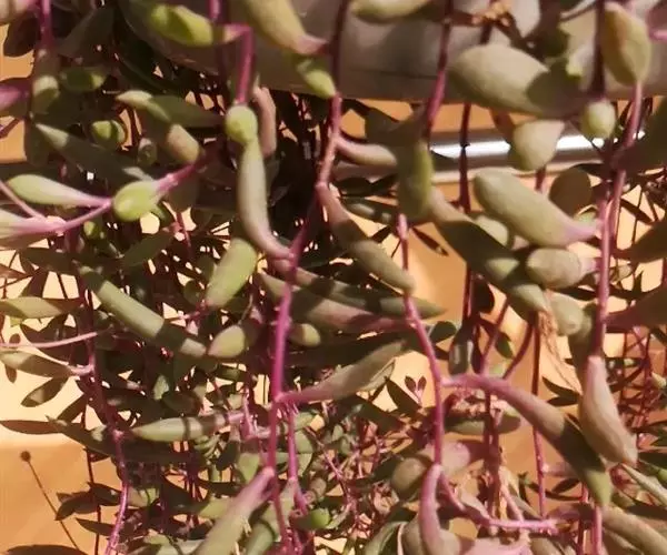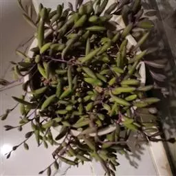 紫玄月几乎没有休眠季节,但夏季高温时应少浇水,叶片起褶皱说明缺水,浇水后第二天叶片就会饱满起来。生根初期需求水分不大,根系生长健壮后会疯了一样呈爆发性生长。在各种垂吊型多肉植物中应该是生长速度最快的了。