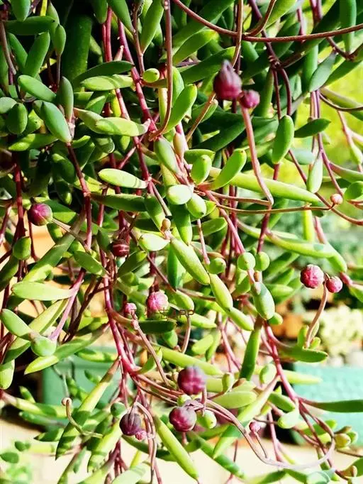 紫玄月中文正式名黄花新月,属于菊科厚敦菊属菊属的被子植物。紫玄月又称紫弦月、紫佛珠、紫葡萄、玉翠楼等,它的原产地现在还没有官方明确记载。多肉植物的吊兰品种之一,叶片非常奇特,常被误认为千里光属。