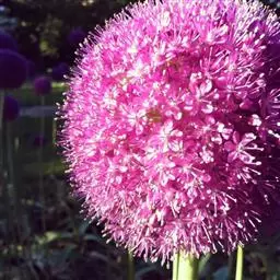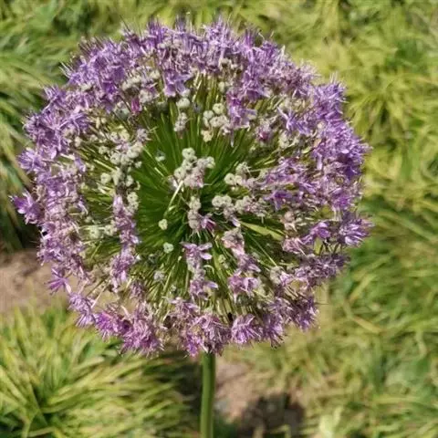 鳞茎常数枚聚生,卵状圆柱形,粗0.5-1厘米;鳞茎外皮灰褐色或带黄色,皮纸质,条裂,有时顶端纤维状。叶1-2枚,光滑,管状,中空,略比花葶短,粗2-6毫米。花葶圆柱状,中空,光滑,高10-40(-60)厘米,粗2-4毫米,1/3-1/2被光滑的叶鞘。总苞紫红色,2裂,宿存;伞形花序近球状,具多而密集的花,小花梗常不等长,短于花被片,内层的比外层的长,有时与花被片近等长,基部无小苞片;花紫红色至淡红色,具光泽;花被片等长,披针形、矩圆状披针形或矩圆形,先端短尖或渐尖,长7-11(-17)毫米,宽3-4毫米;花丝为花被片长的1/3-1/2(-2/3),下部1-1.5毫米合生并与花被片贴生,内轮花丝基部狭三角形扩大,比外轮的基部宽1.5倍;子房近球状,腹缝线基部具小蜜穴;花柱不伸出花被外。花果期7-9月。