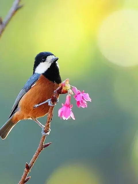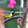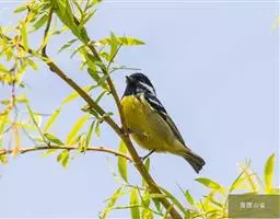 黄腹山雀是雀形目山雀科山雀属鸟类。虹膜褐色或暗褐色;嘴蓝黑色或灰蓝黑色;头、喉胸斑黑色,…