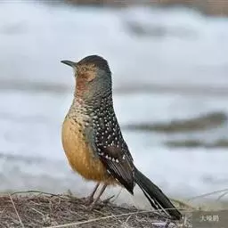 大噪鹛:中型鸟类,体长32-36厘米。额至头顶黑褐色,背栗褐色满杂以白色斑点,…