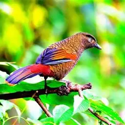 蓝翅噪鹛:噪鹛科、彩翼噪鹛属动物。中型鸟类,体长22-25厘米。上体棕橄榄褐色密被黑色鳞状斑,…