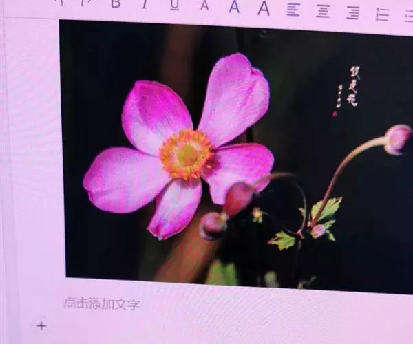 花葶直立,疏被柔毛;聚伞花序2-3回分枝,有较多花,偶尔不分枝,只有3花;苞片3,有柄(长0.5-6厘米),稍不等大,为三出复叶,似基生叶;花梗长3-10厘米,有密或疏柔毛;萼片5,紫红色或粉红色,倒卵形,长2-3厘米,宽1.3-2厘米,外面有短绒毛;雄蕊长约为萼片长度的1/4,花药黄色,椭圆形,花丝丝形;心皮约400,生于球形的花托上,长约1.5毫米,子房有长柄,有短绒毛,柱头长方形。