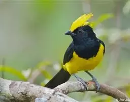 台湾黄山雀体长约13厘米。头顶至后颈黑色,有一长的黑色羽冠,羽冠末端和后颈中央白色。背苍绿色,…