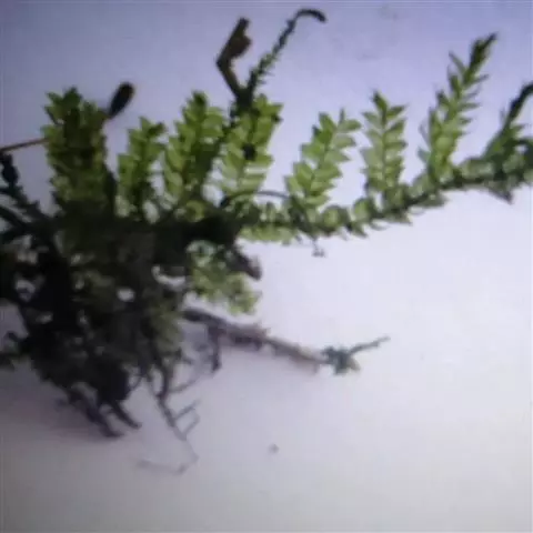 全草呈扭曲状,长约10cm,淡绿色或黄绿色。茎细弱,直径3-5mm,营养叶与孢子叶均有分枝;有时仅见孢子枝。叶二型,背腹各2列,主茎(枝)上的叶较大,略疏生,分枝上的叶略小略密,展平后,中叶(腹叶)卵形或长卵形,顶端渐尖无长芒,边缘有细齿(扩大镜下),侧叶(背叶)卵形或长卵形,稍向下弯,顶端钝头,近全缘。孢子叶二型,密集成扁长圆柱形的穗,穗长约1cm,生于孢子枝分枝顶端,质较柔软,略具草腥气,味微苦微涩。