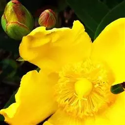 金丝梅是金丝桃科金丝桃属丛状灌木。全株无毛,枝条纵线棱,褐色或红褐色;单叶对生,…