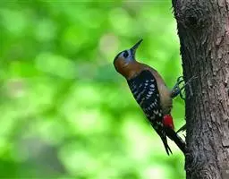 棕腹啄木鸟为啄木鸟科,啄木鸟属是中等体型的鸟类,体长约20厘米。头顶部具红色斑带。脚强健,有趾4个,…