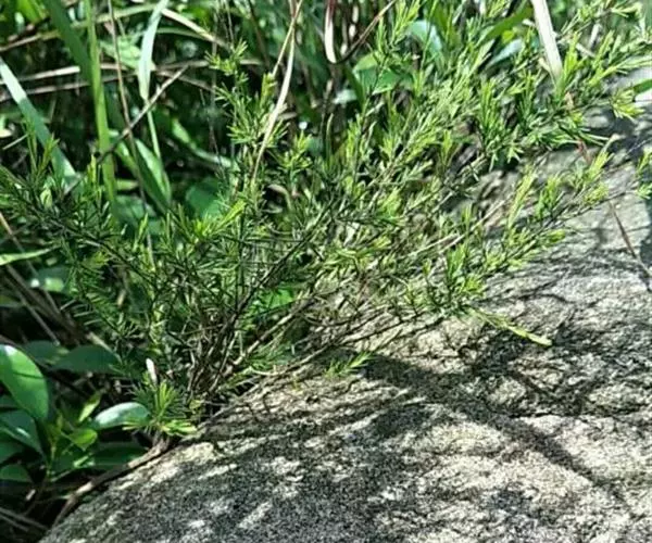 小乔木或灌木状,多分枝,高达1.5米;全株无毛。叶对生,无柄或有短柄,直立或斜展,线形,长0.5-1厘米,宽约1毫米,先端尖,中脉在上面凹陷,在下面突起,有透明腺点。花小,黄白色,单生叶腋,径2-3毫米。花梗长约1毫米,基部有2小苞片,苞片早落,花长1-1.5毫米萼筒钟形,长约1.5毫米,萼齿5,膜质,细小,三角形,近宿存;花瓣5,近圆形,分离,长约1.5毫米,基部窄成短柄;雄蕊(8)10,成对与萼齿对生;短于花瓣;子房下位,3室,每室有2胚珠,花柱短,宿存。蒴果长1-2毫米。种子扁平,有角。花期夏秋。