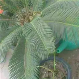 苏铁养护时应保持土壤水分在60%左右,浇水应遵循见干见湿的原则。春夏季叶片生长旺盛时期,特别是夏季高温干燥气候要多浇水,早晚1次,并喷洒叶面,保持叶片清新翠绿。入秋后可2~5天浇水1次。生长期每月可施1~2次施复合肥或尿素。尿素最好是用0.2%的水溶液喷施叶片作叶面肥,施叶面肥应遵循“少吃多餐”的原则。每年早春施花生麸1次,花生麸可不用水沤制直接施于盆面上或埋于盆土里。家庭每天煮饭前的洗米水,不要沾有油渍,用桶、盆盛装,翌日作液肥浇灌,具有一定的肥效。