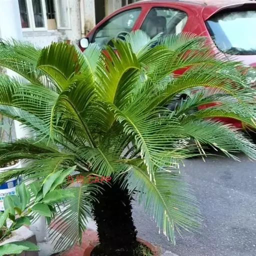 苏铁。俗称:铁树,别名:辟火蕉、凤尾蕉、凤尾松、凤尾草,拉丁文名:Cycas revoluta Thunb. 苏铁科、苏铁属, 一说是因其木质密度大,入水即沉,沉重如铁而得名;另一说因其生长需要大量铁元素,故而名之。又名凤尾蕉、避火蕉、凤尾松,多种植在南方,现广泛分布于中国、日本、菲律宾和印度尼西亚等国家。苏铁最为出名的是其开花,被称之为“铁树开花”。