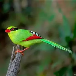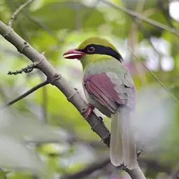 蓝绿鹊:中型鸟类,共有5个亚种。体长36-38厘米。尾长,嘴、脚红色。通体羽色主要为草绿色,…
