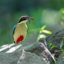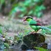 仙八色鸫是雀形目八色鸫科八色鸫属鸟类。雄鸟前额至枕部深栗色,有黑色中央冠纹,眉纹淡黄,…