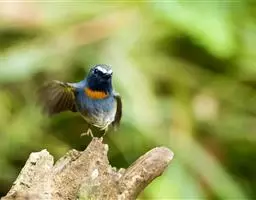 棕胸蓝姬鹟:属小型鸣禽,体长10-13厘米,体重6-10克,是一种体型很小的灰蓝及棕色鹟,…