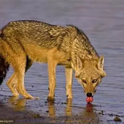 亚洲胡狼是金豺的指名亚种,体型中等、匀称,四肢修长,趾行性,利于快速奔跑。头腭尖形,颜面部长,…