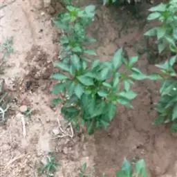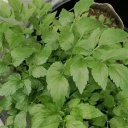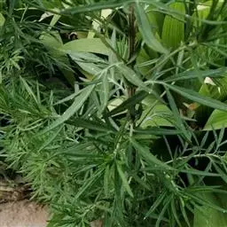 栽植管理:垂直畦面开10厘米深沟,按株行距20厘米×20厘米进行移栽定植。定植完毕后开动水泵进行喷水,此时适当提高棚温,白天温度27℃左右,不宜超过30℃,夜间温度10-15℃。2天后缓苗,此时降低温度,白天控制在20-25℃,夜间10℃左右。牡蒿喜温暖环境,忌高温高湿环境,在水分管理上要求土壤见干见湿,间干间湿,一般每周浇一次透水。牡蒿耐贫瘠土壤,为了提高产量和品质,一般每15天左右施一次腐熟鸡粪,每平方米施入1千克左右,施肥后浇水,有条件的情况下可追肥浓度15-25%沼液,效果最好。当苗高15厘米时进行摘心,促发侧梢,侧梢伸长至15-20厘米时于侧稍基部留2个叶片采收。牡蒿以采食嫩茎为主,因此要适当控制光照强度。冬春季(11月至次年5月),采用内挂遮阳网(遮光度50%)遮光;夏秋季(6-9月)采用利索喷涂遮光降温或将遮阳网盖于棚膜外,以利遮光和降温。每茬收割后,每平方米撒施腐熟鸡粪1千克左右,有条件的地区可用沼液追肥。追肥的时间间隔同前。