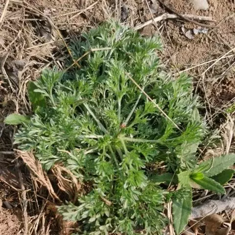 牡蒿播种后10天左右子叶出土,这时露地播种的应选择阴天或在傍晚撤掉地膜,以后根据天气情况适当浇水;日光温室播种需管理好棚室温度,白天温度保持在20-25℃左右,夜温不低于5℃。从子叶出土到第一片真叶展开需15天左右,此时开始按2厘米间距间苗,间苗后浇水,以后适当控水炼苗。从第一片真叶展开至第3片真叶展开需30-35天,此时苗高可达8-10厘米,进行移栽定植。