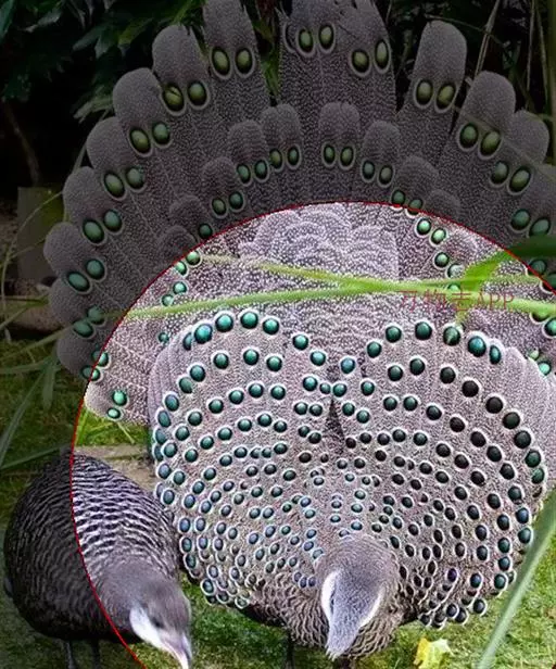 雌鸟比雄鸟略小,羽色也较暗淡,尾较短,眼状斑也不明显。