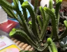 戴冠曲 景天科莲花掌属多肉植物,为亚灌木分枝多,叶片生长在茎端和分枝顶端集和成莲座叶盘,叶片倒卵…