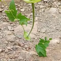 (2)扦插繁殖:金银花藤茎生长季节均可进行扦插繁殖。选择藤茎生长旺盛的枝条,截成长30厘米左右插条,每根至少具有3个节位,摘下叶片,将下端切成斜口,扎成小把,用植物激素IAA500毫克/千克(500PPm)浸泡一下插口,趁鲜进行纤插。株行距150厘米X150厘米,挖穴,每穴扦的插3-5根,地上留1/3的茎,至少有一个芽露在土面,踩紧压实,浇透水,1个月左右即可生根发芽。也可将插条先育成苗子,然后再移栽大田。