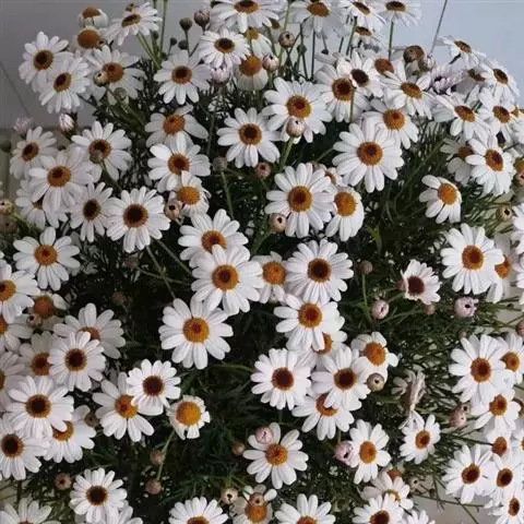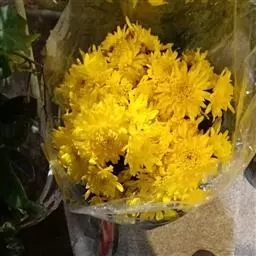 乒乓菊是菊科的一种植物,因为外形像乒乓球而得名,有黄、绿、白、红四种颜色,常作为鲜切花使用,原产自日本。乒乓菊造型讨巧、可爱,而且保鲜时期较长,代表爱情圆满长久。