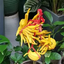 香橼为小乔木或灌木状;株高达5米;幼枝、芽及花蕾均暗紫红色;茎枝多刺,长达4厘米;单叶,…