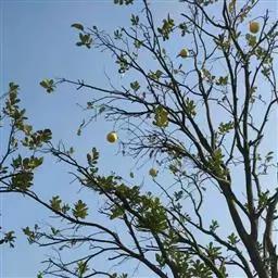 沙田柚,芸香科柑橘属乔木。树干较高,枝叶繁茂,嫩枝扁且有棱,叶质颇厚且为浓绿色,…