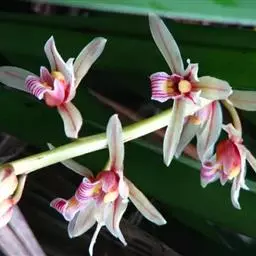 钩距虾脊兰:根状茎不明显。假鳞茎短,近卵球形,粗约2厘米,具3-4枚鞘和3-4枚叶。叶在花期尚未完…