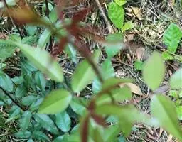 幼枝密被针刺及宽扁大形紫色皮刺,小叶片上面叶脉明显,…