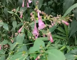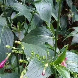 花: 花无梗,对生,组成腋生或顶生的穗状花序,长10-30厘米;苞片对生,叶状,长1.5-2.5厘米,具短柄,最下部的比花萼长。最下部小苞片比花萼稍短;花萼不等5深裂,裂片线形,后裂片较大;花冠堇、玫瑰红或白色,花冠圆筒形,顶端内弯,喉部扩大呈窄钟形,稍弯曲,不扭弯,花冠筒短圆柱形,喉窄钟形,长为花冠筒的两倍,支撑花柱的毛排列成2列,冠檐5裂,裂片等大,倒心形,旋转状排列;雄蕊2长2短,内藏;子房上半部被毛,每室有胚珠2粒,花柱无毛。