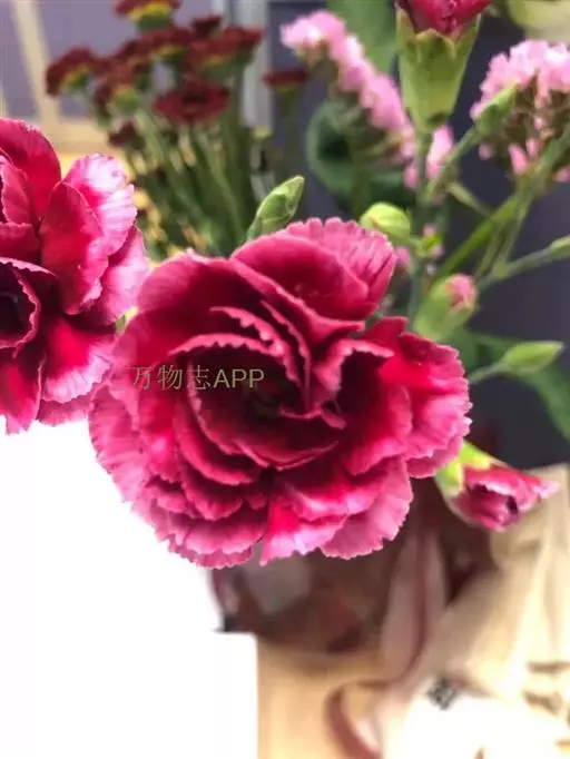 康乃馨,原名:香石竹,又名:狮头石竹、麝香石竹、大花石竹,拉丁文名:Dianthus caryophyllus L. 被子植物门;双子叶植物纲;中央种子目;石竹科;石竹属;香石竹。