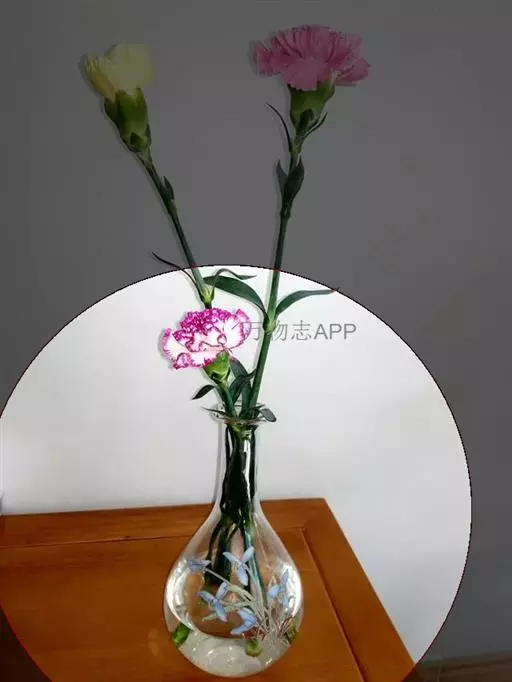 2、开放度小:一手捏住花头底部,另一手用食指侧面轻轻用力拨花头外侧的花瓣,这样花就开大了。不可以用手去拨花心,让康乃馨泡水后慢慢开放即可。